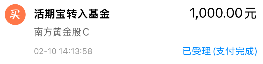 我加仓$南方黄金股C$1000元!跟踪的黄金股指数这会看跌约1.3%左右,我正好仓位不多,趁跌今天可以低吸一下,后面要是有调整会继续加,具体逻辑我一会专门再发文章说,记得来看。
