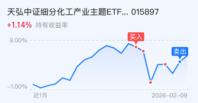 $天弘中证细分化工产业主题ETF联接C$跟踪的细分化工指数这会看涨0.1%左右,我持仓不动。
