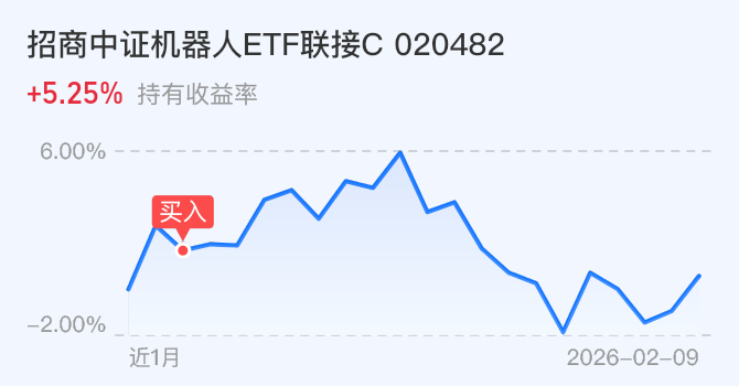 跟踪的机器人指数这会看涨1.2%左右,3连涨了,又临近20日均线压力,想再T点别的机器人,这只先不动。$招商中证机器人ETF发起联接C(OTCFUND|020482)$
