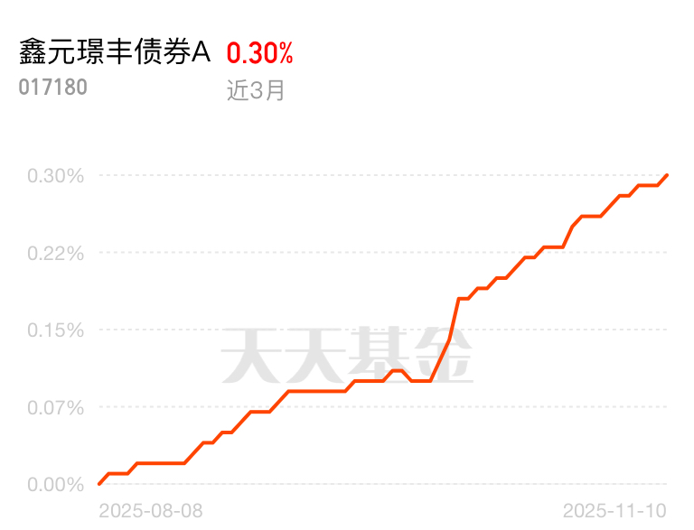 现在大家理财都怕亏,债市震荡也让人犹豫。鑫元璟丰债券A给出了安心答案,近3个月收益0.30%,收益不算低还稳得住,不管是短期持有还是长期配置都很合适。$鑫元璟丰债券A$