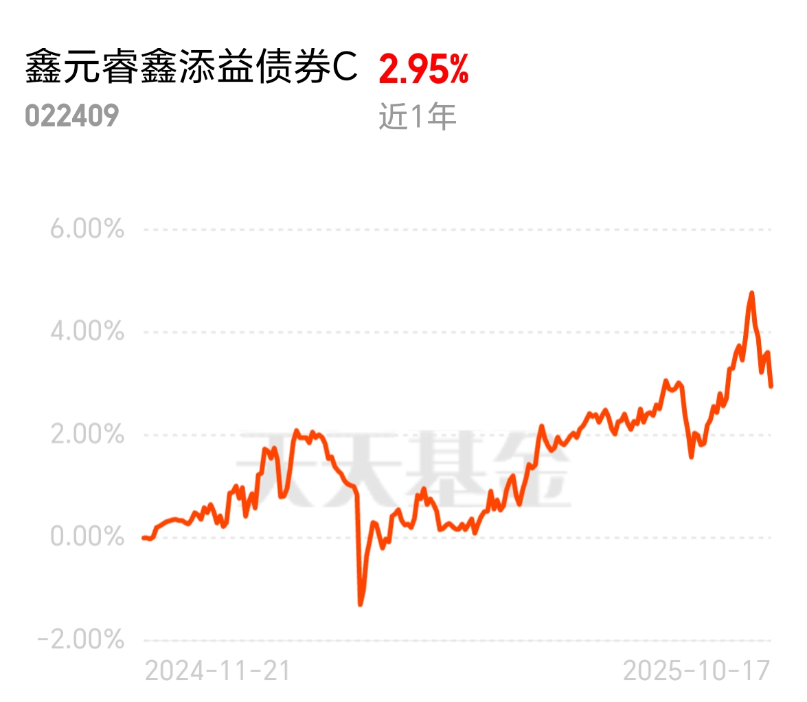 最近好多人怕股市晃,都往债市躲,毕竟谁也不想天天看账户上上下下揪心!现在债市环境真不错,钱松还波动小,特适合求稳的人。鑫元睿鑫添益债券 C 就踩在舒服点上,当下位置正合适,想避折腾安稳赚点稳钱的,上车不亏,不用纠结这纠结那,买了就能放宽心!