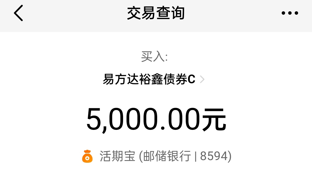 建仓买入易方达裕鑫债券5000元