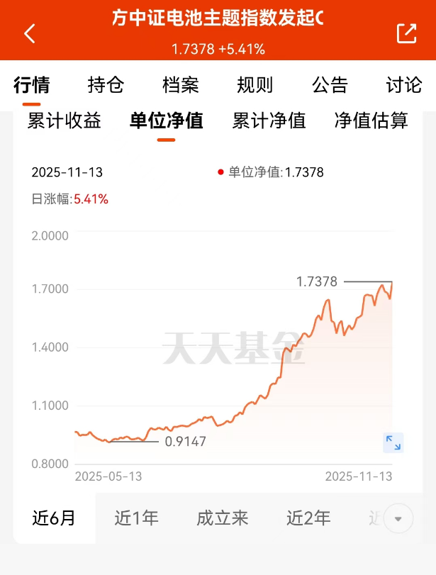 看$南方中证电池主题指数发起C$(018927)近三个月收益62%,近六个月涨幅达80%,昨日上涨5.41%,显示行业回暖具备基本面支撑。随着供需格局优化及固态电池等技术突破,板块最艰难时期已过。该基金采用被动指数策略,持仓透明分散,避免个股风险。尽管波动较大,但在行业趋势明朗阶段,仍是参与电池主题投资的便捷工具。#黄金又牛起来了!这次你上车了吗?#