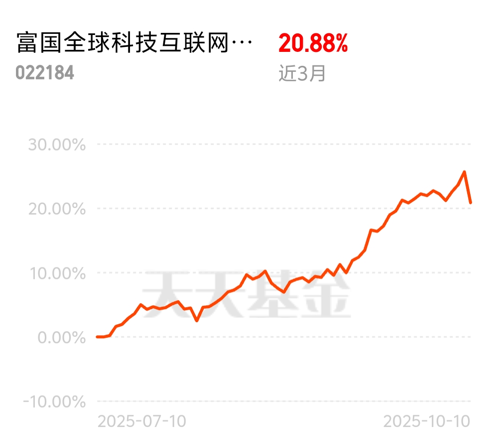 互联网也不错,富国全球科技互联网布局了A股,港股和美股的互联网,比较均衡,3个月有21%涨幅。