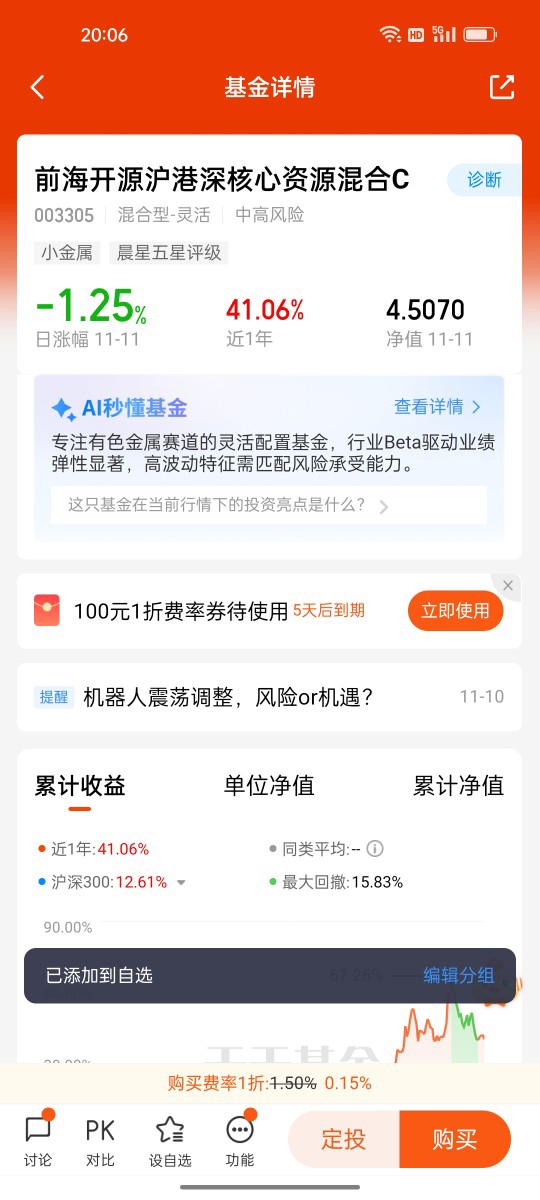 黄金有色板块,$前海开源沪港深核心资源混合C$ 近1年68.75%的表现,刚好匹配我对避险资产的配置需求。