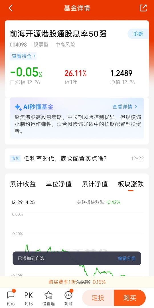 市场风格切换快,可以考虑用“矛+盾”的组合,科技股是“矛”负责进攻;波动较小的港股红利是“盾”来降低波动。比如这只股息率50强,精选港股高股息标的,是震荡市的“避风港”,帮你保住收益。$前海开源港股通股息率50强$