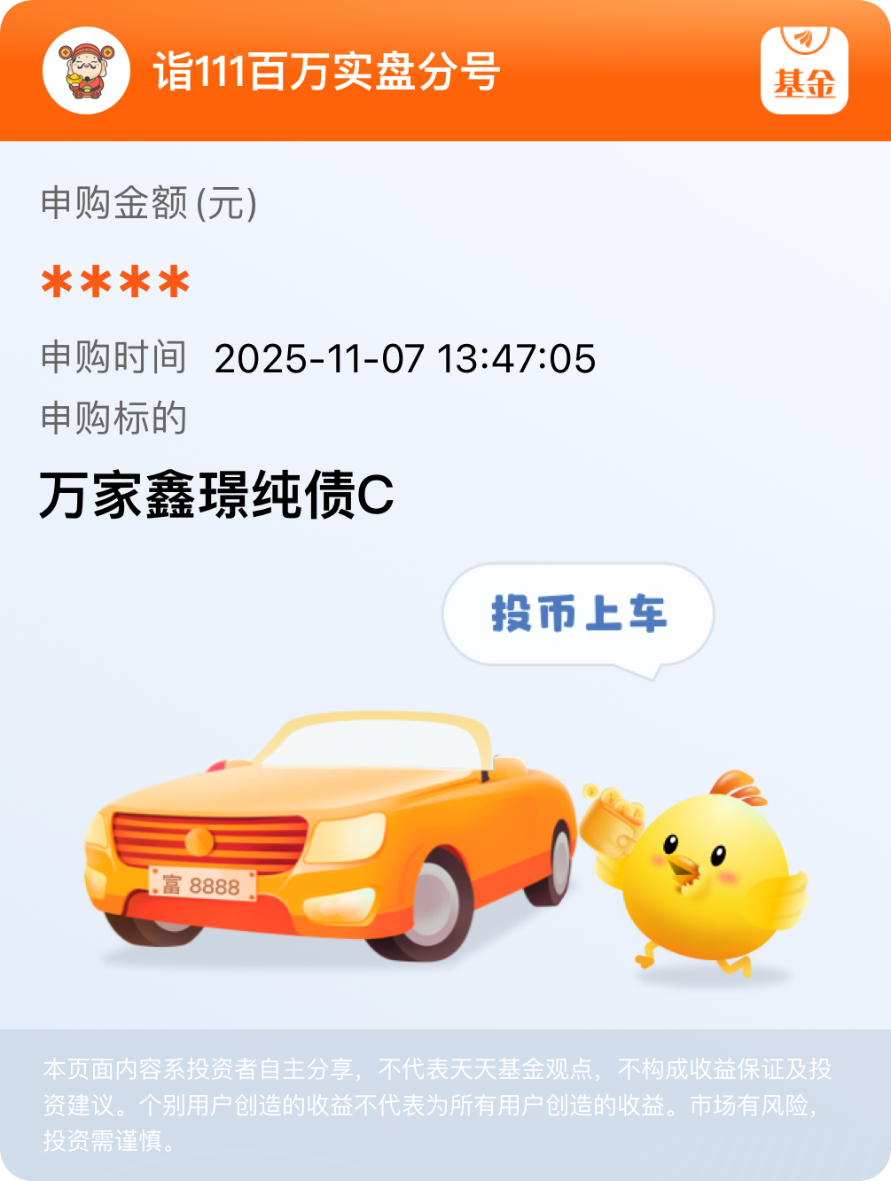 #晒操作# 在股市波动较大的情况下,$万家鑫璟纯债C$ 基金能发挥一定的避险作用,适合作为投资组合的底仓来平衡风险。