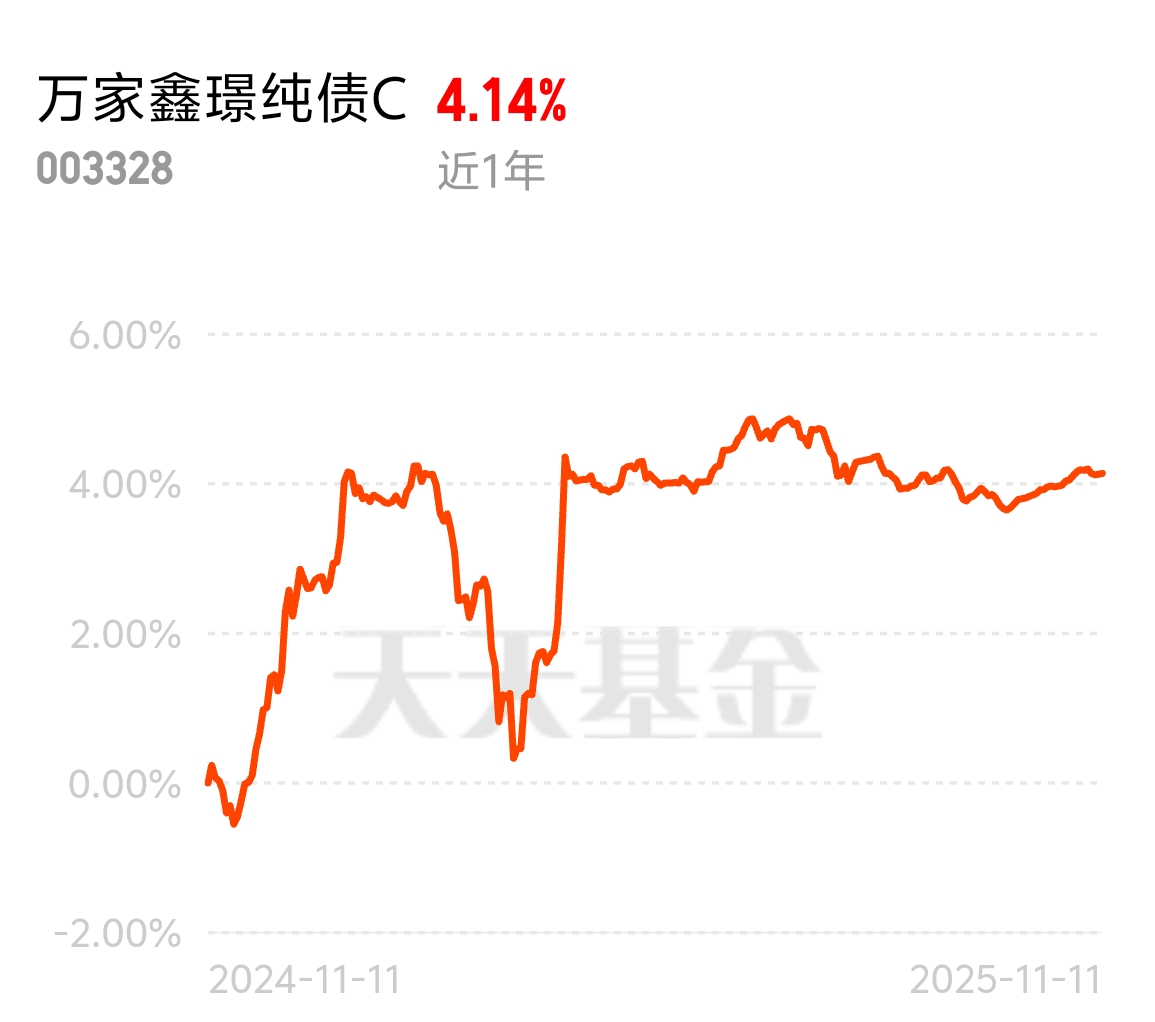 就问大家该基波动小,近一年收益4.14%,香不香呢$万家鑫璟纯债C$