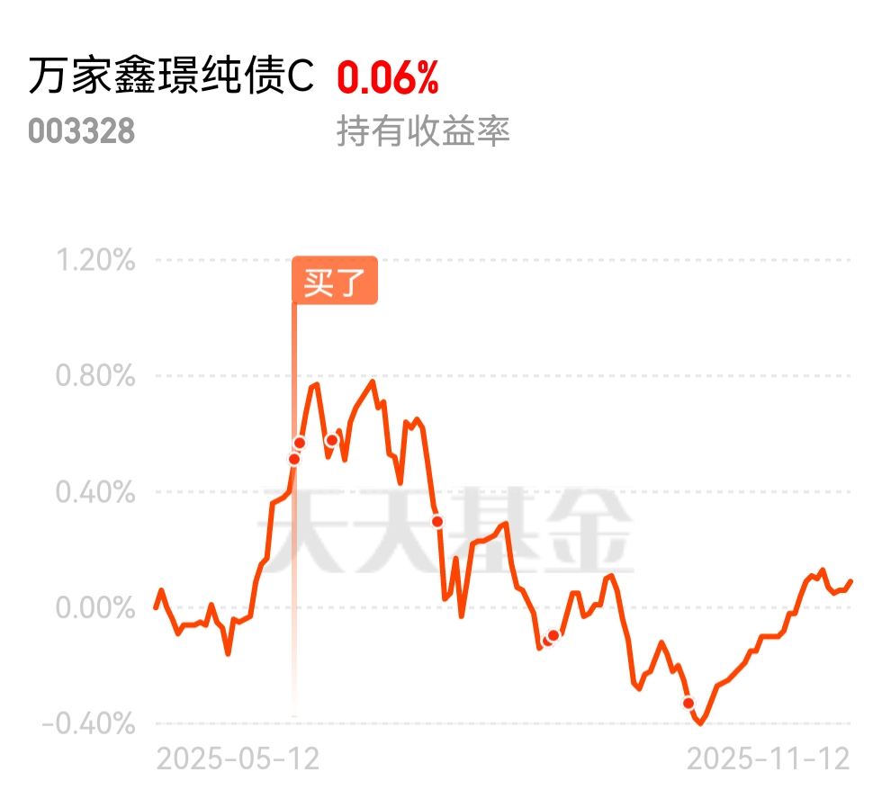 债市最近开始稳了,这只最近走势不错。$万家鑫璟纯债C$