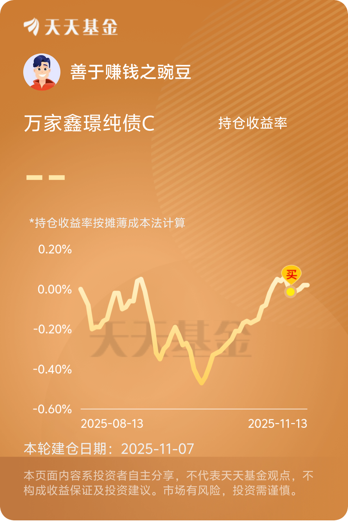 最近股市各板块分化严重了,还是多配置一些债基,万家鑫璟债券持有体验不错的,最适合长期了!#晒收益#