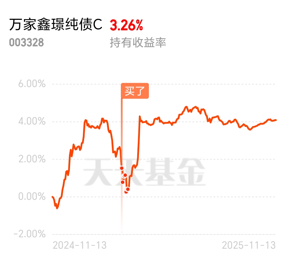投资的目的是赚钱,首先得尽量不要亏,然后才是赚,我买的这个债基不错,比较稳健,虽