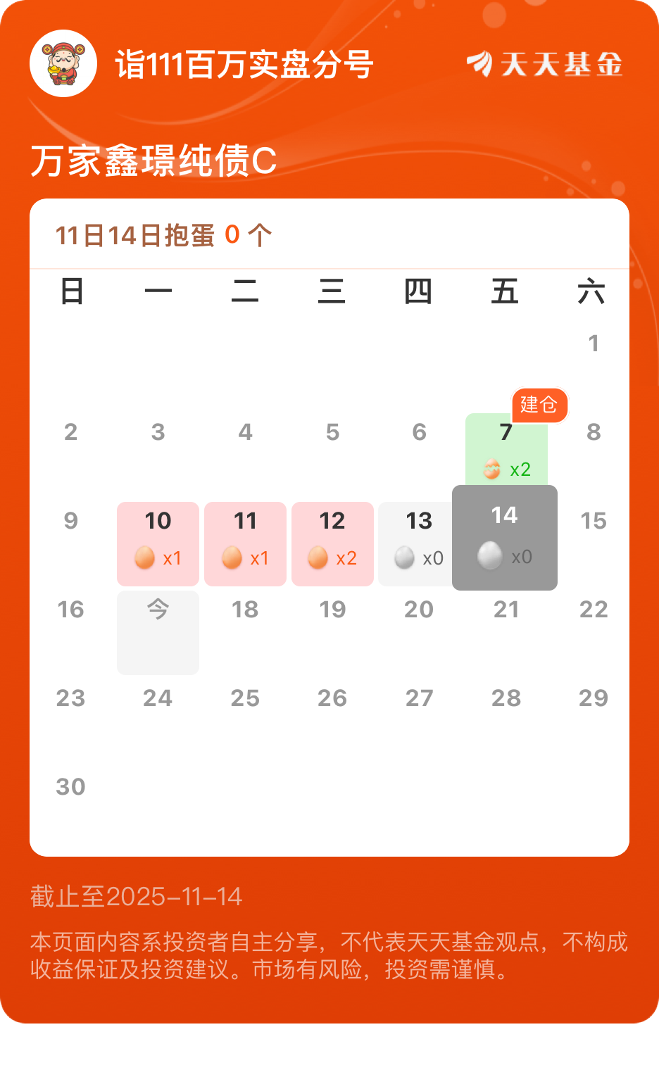 对于已经配置较高权益类资产的我们,$万家鑫璟纯债C$ 可以作为有效的对冲工具,帮助分散投资风险,优化整体资产配置,跟一波#晒抱蛋收益#