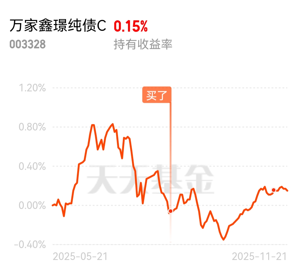 在这里躲过了暴跌,稳稳当当收蛋挺好,搬砖人保证本金安全更为关键,我喜欢$万家鑫璟纯债C$