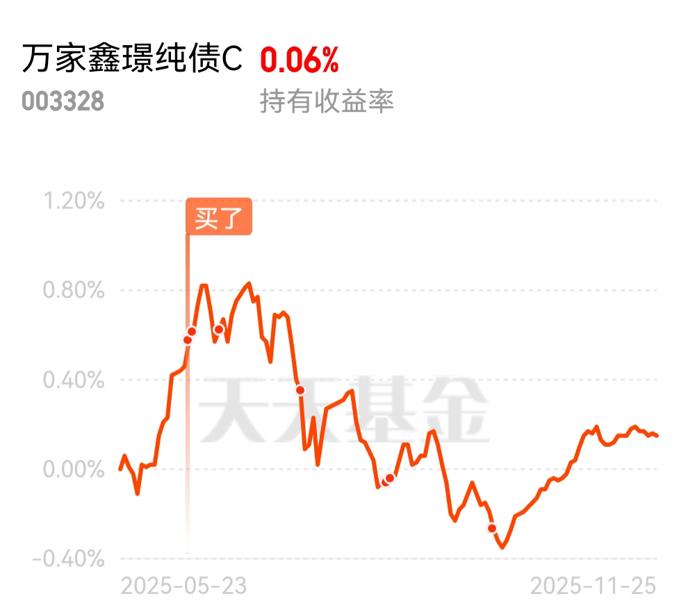 还行吧,以时间换空间债基更适合长期持有,闲钱跟上。$万家鑫璟纯债C$