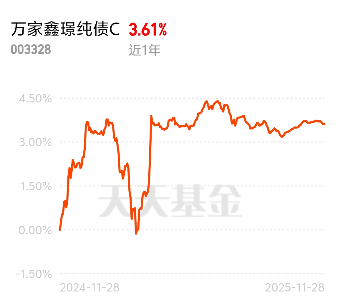今天债市晴天,应该还能收蛋,长期拿好这基收益不会差的$万家鑫璟纯债C$