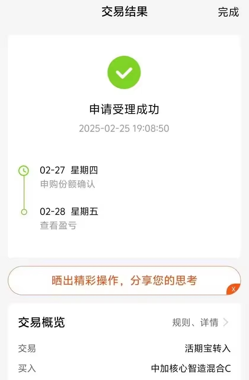 个人比较喜欢高弹性板块,定投和波段都很好,之前上车的中加核心智造C,看这只基金的曲线,爆发力强弹性足,已经建仓观察.......