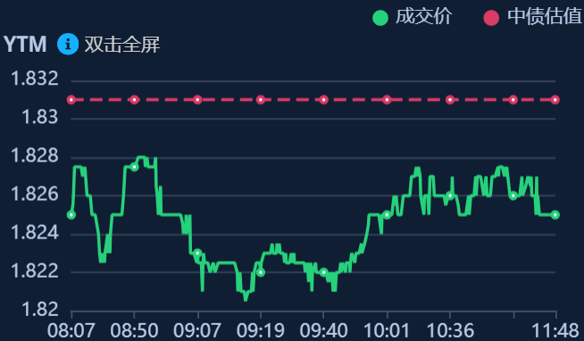 二、十年期国债收益率:1.825 0.006%(国债收益率越涨,债市越跌,两者反向关系)