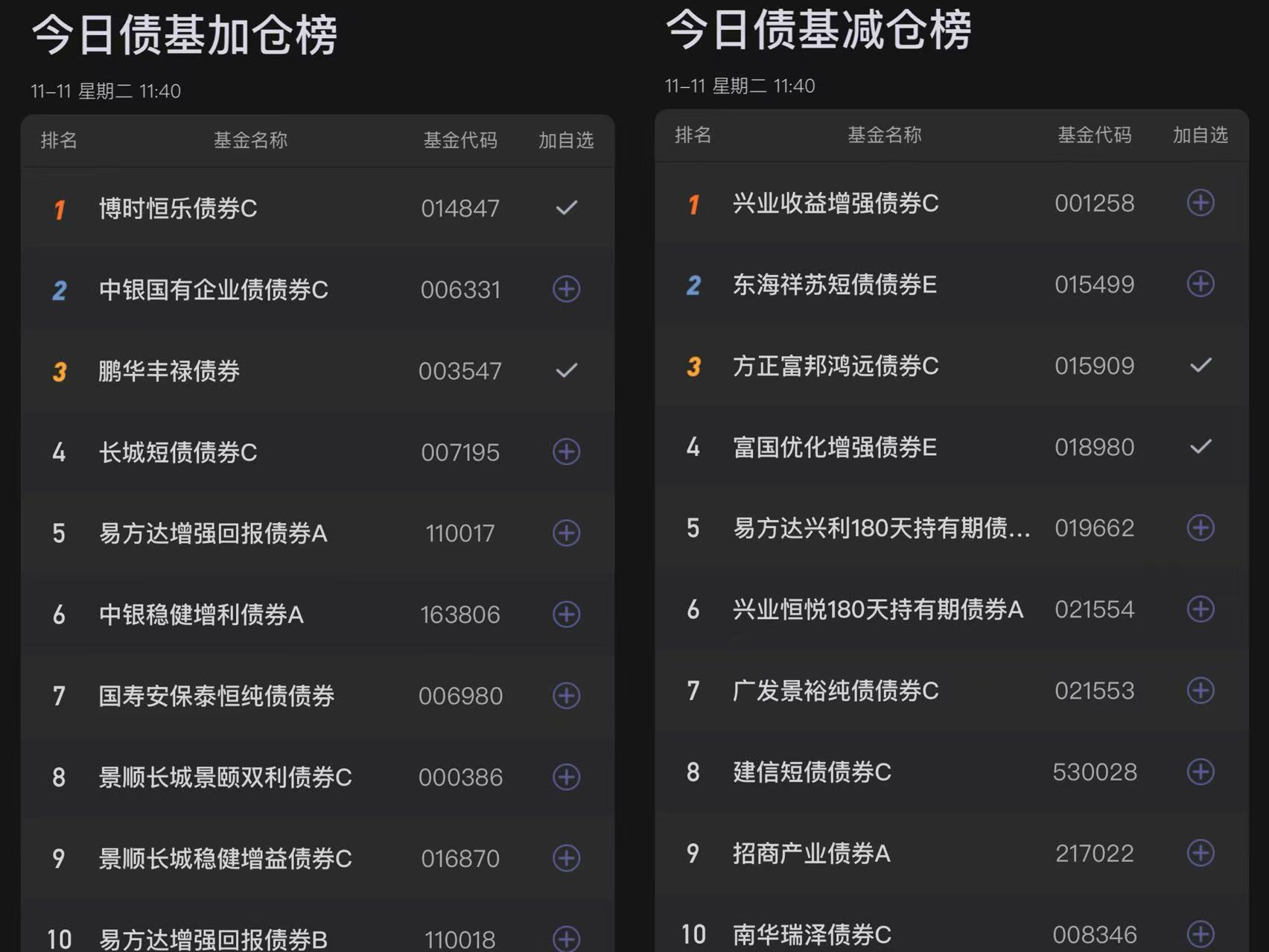$博时恒乐债券A(OTCFUND|014846)$ $富国优化增强债券E(OTCFUND|018980)$ $南方中债7-10年国开行债券指数E(OTCFUND|013594)$ $永赢稳健增强债券C(OTCFUND|014089)$ $博时裕乾纯债债券C(OTCFUND|002404)$ $光大增利收益债券A(OTCFUND|360008)$ $景顺长城稳健增益债券C(OTCFUND|016870)$ $万家锦利债券发起式C(OTCFUND|020219)$ $长盛盛裕纯债D(OTCFUND|015736)$ $国泰惠丰纯债债券A(OTCFUND|007214)$