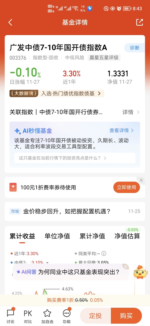 美联储降息预期升温,国内明年初降息概率高,长债收益空间打开,这只债基成立以来年化 5%,现在买锁定高票息