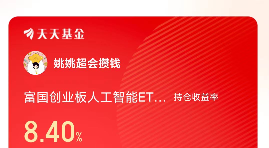 同时重仓AI软硬件龙头,非AI个股全剔除,是算力覆盖度最高的宽基指数产品,后续AI内部轮动、科技线切换都能精准跟上,妥妥吃满板块红利。关键还是7免产品,操作灵活没负担,姚姚继续顺势而为加仓1000元,跟着主线节奏走准没错。
