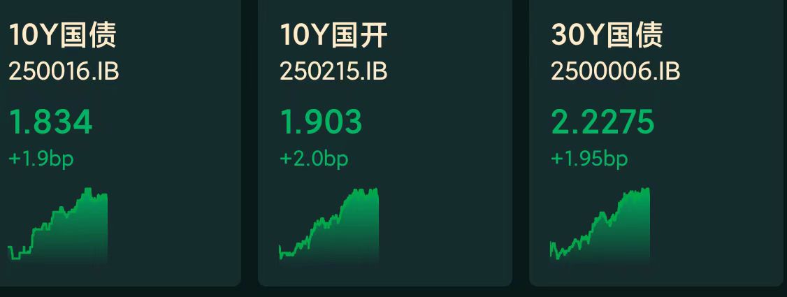 十年期国债收益率:1.834%,+1.9BP(国债收益率越跌,债市越涨)