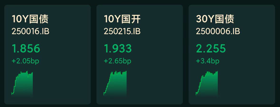 十年期国债收益率:1.856%,+2.05BP(国债收益率越跌,债市越涨)