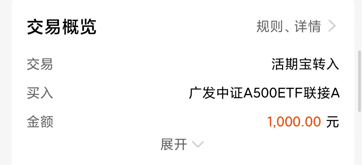 当下就是最佳布局窗口!既能蹲期权落地前的预热行情,又能抢占跨年布局先手,妥妥的双重红利~姚姚果断加码定投1000元$广发中证A500ETF联接A(OTCFUND|022424)$,闭眼做多不犹豫!既能增厚收益,又能稳稳规避风险,香到飞起!