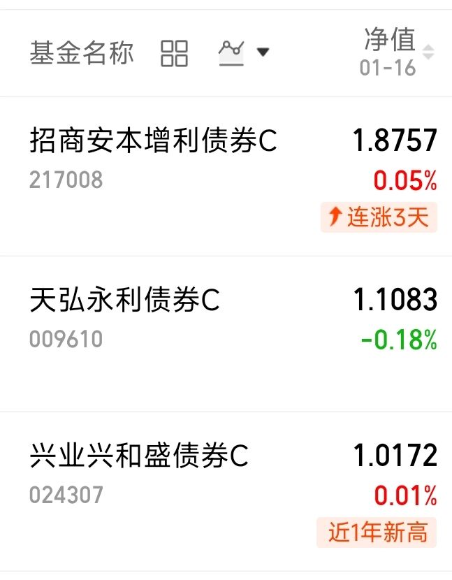 想攒钱又怕亏损?偏债基金能兜底!它债券占比高,风险特别低,慢慢积累收益超靠谱。这类基金灵活又稳健,不用持有太久,收益比活期高不少,妥妥是闲钱打理的好选择。$招商安本增利债券C(OTCFUND|217008)$上周五收了5个蛋。