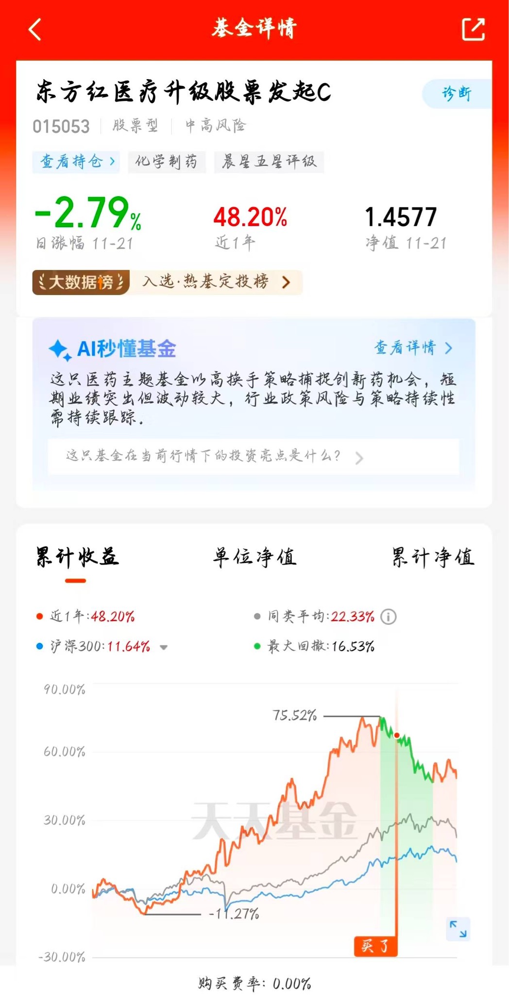 创新药利好不断,东方红医疗升级今年以来56%的涨幅领跑市场。它布局港股A股前沿药企,这次回调可能就是上车主升浪的良机,值得关注。