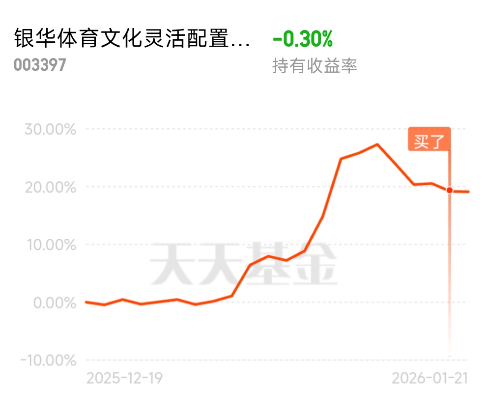 之前犹豫没上车是我的错,现在$银华体育文化灵活配置混合A$买入,不然跟不上后面的