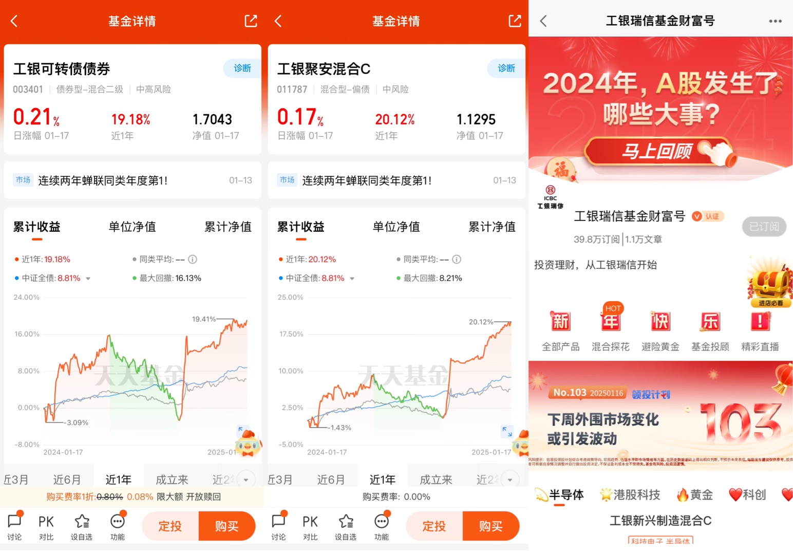 工银可转债自成立来获得了70.43%的回报,近1年更是拿下19.18%的收益回报,在同类基金中排名第六,工银可转债在追求财富的稳健增值同时,也保证了资产的控风险性。从夏普比率来看,近3年夏普比率0.12,优于同类68%的基金,工银可转债攻守有道,是想要追求收益又怕又太高风险人群的好选择,感兴趣的可以持续关注!@工银瑞信基金