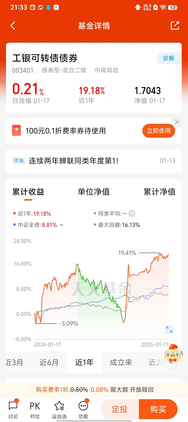 实际上也是如此,工银可转债基金在2024年获得18.67%的收益回报,连续两年在同类基金中排名第一,且在近2年的业绩回报表现也是位于同类基金第1,表现极为强势。对于想要获取一定收益又怕承担太高风险的投资者,可转债基金是一类非常好的分散配置债券市场的工具。而工银可转债长期来看是值得信赖的一只优秀宝藏基。@工银瑞信基金