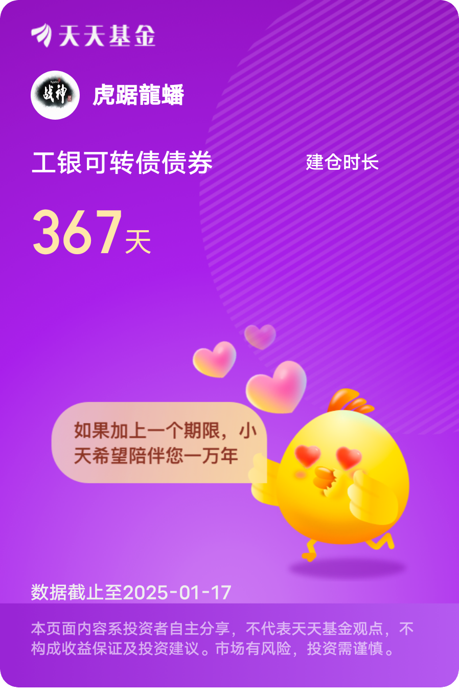 基民小虎这样看待2025年的市场表现:在受益于政策发力,上市公司盈利有望改善,估值、股价都会进一步提升,正股带动可转债价格上涨。可转债基金和偏股混合型基金相应会有很好表现,可以关注一下冠军宝藏基工银可转债债券、工银聚安混合C。@工银瑞信基金