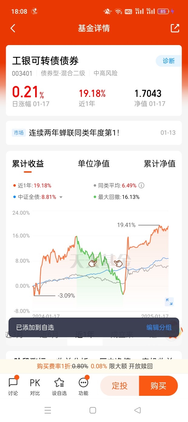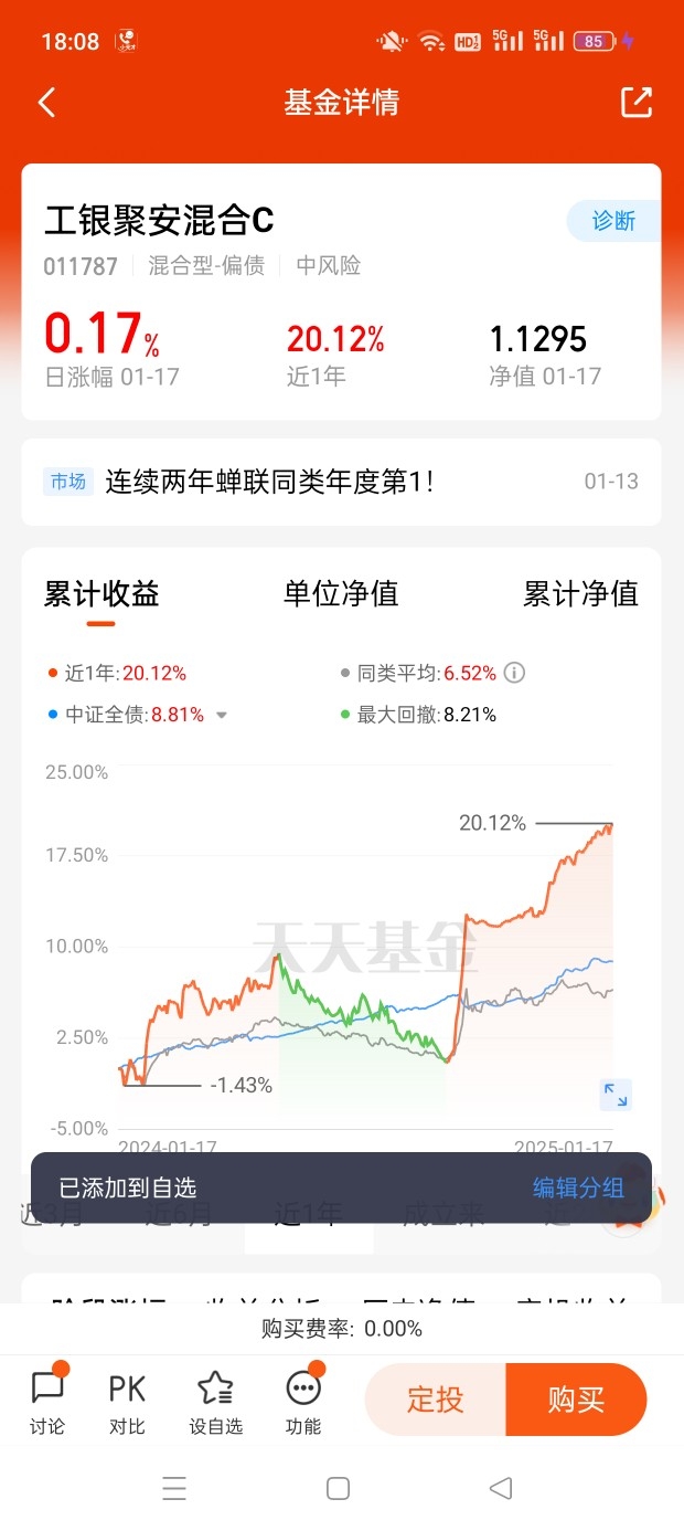 打卡第1天+对工银可转债债券基金和工银聚安混合基金有一定了解,它们在近年表现亮眼