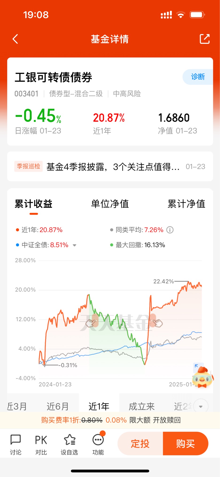#宝藏基#打卡第2天。面对不稳定的市场状况,兼具进攻与防守特性的二级债基显得尤为珍贵。它们不仅能够参与股票市场的收益,还能借助债券的稳定性保护资产。定投$工银瑞信可转债债券$,可以让投资者逐步积累份额,在市场低位不断吸入筹码,并在市场回升时享受增值的好处,从而优化长期投资回报。