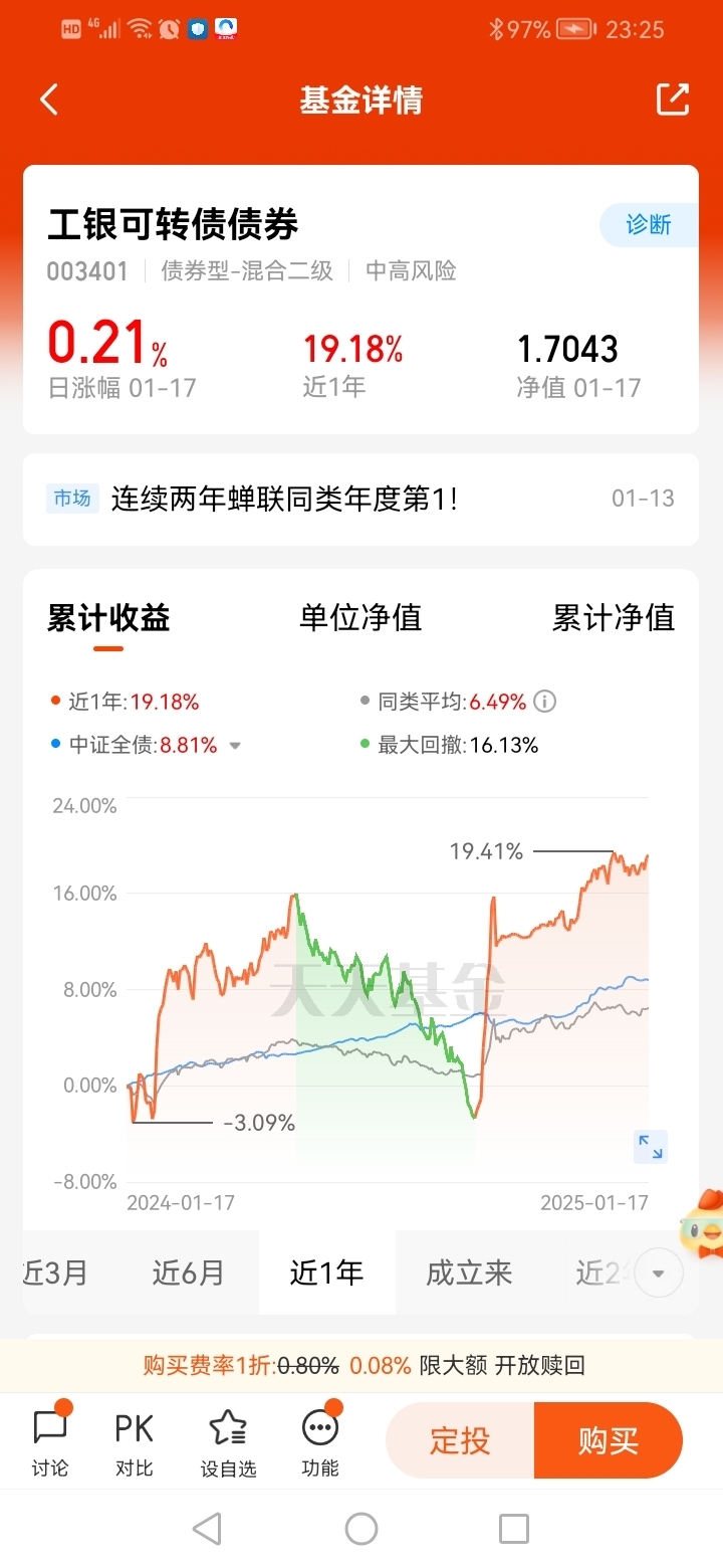 打卡第22天,看好$工银可转债债券$,震荡市场具备股和债的双重属性,可谓是“进可