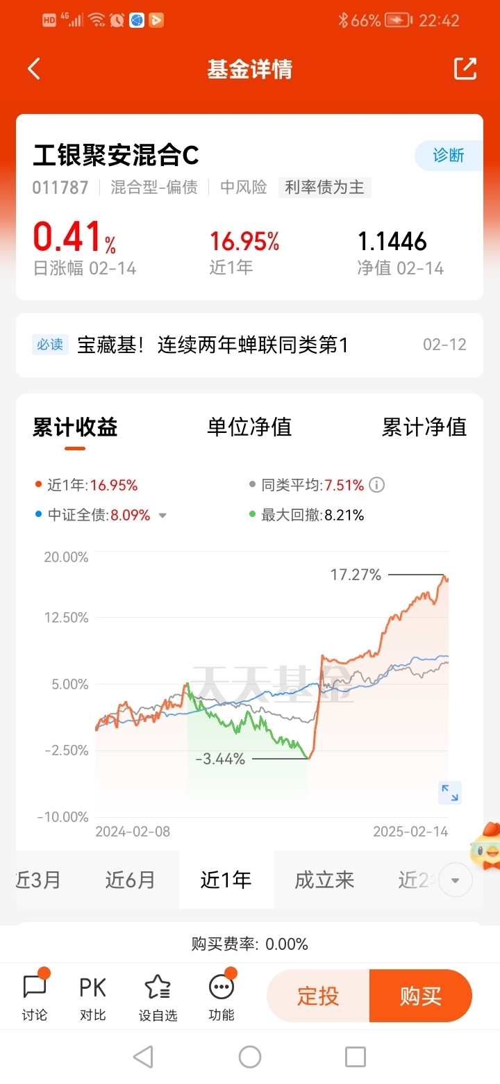 #攻守兼备宝藏冠军基#打卡第4天,看好$工银可转债债券$ ,具备股和债的双重属性,让资产配置更加灵活多元,进可攻、退可守。可转债作为有权益属性的资产,受益于降准后的流动性宽松,配置可转债可以提升分散化水平,震荡市场要配置增强收益。看好基金经理黄诗原,工银可转债债券2024年、2023年连续两年蝉联同类年度排名第1,2024年收益率达18.67%,2023年收益率达15.06%,业绩优秀!看好$工银聚安混合C$ 为偏债混合类产品,业绩表现亮眼,同样摘得2024年度同类排名第1,昨天又上涨了,收益不错,值得关注!@工银瑞信基金