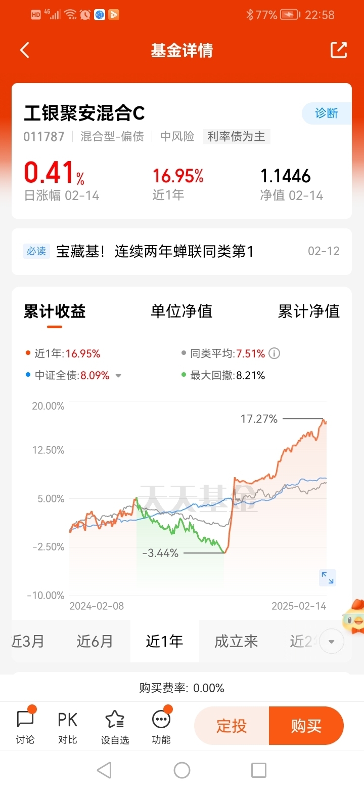 #攻守兼备宝藏冠军基#打卡第5天,看好$工银可转债债券$ ,震荡市场具备股和债的双重属性,可谓是“进可攻、退可守”。可转债基金有以下优势,让资产配置更加灵活多元,具有较好的下行空间保护,适合长期投资。基金经理黄诗原擅长可转债管理,工银可转债2024年、2023年连续两年蝉联同类年度排名第一,2024年收益率达18.67%,业绩优秀,震荡市场投资更加灵活,获得收益!黄诗原管理的$工银聚安混合C$ ,业绩表现亮眼,同样摘得2024年度同类排名第1,业绩优秀,近期上涨,值得关注!@工银瑞信基金