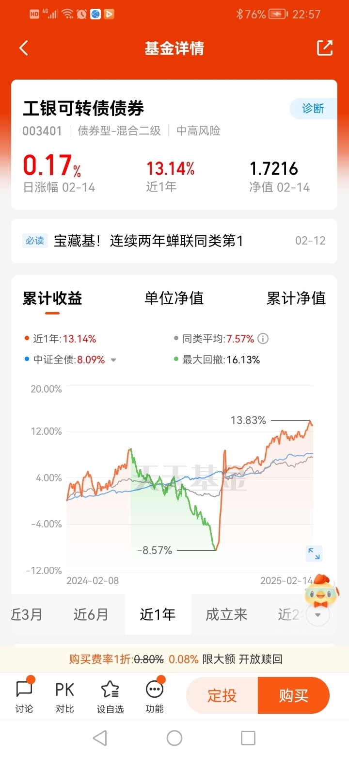 打卡第5天,看好$工银可转债债券$,震荡市场具备股和债的双重属性,可谓是“进可攻