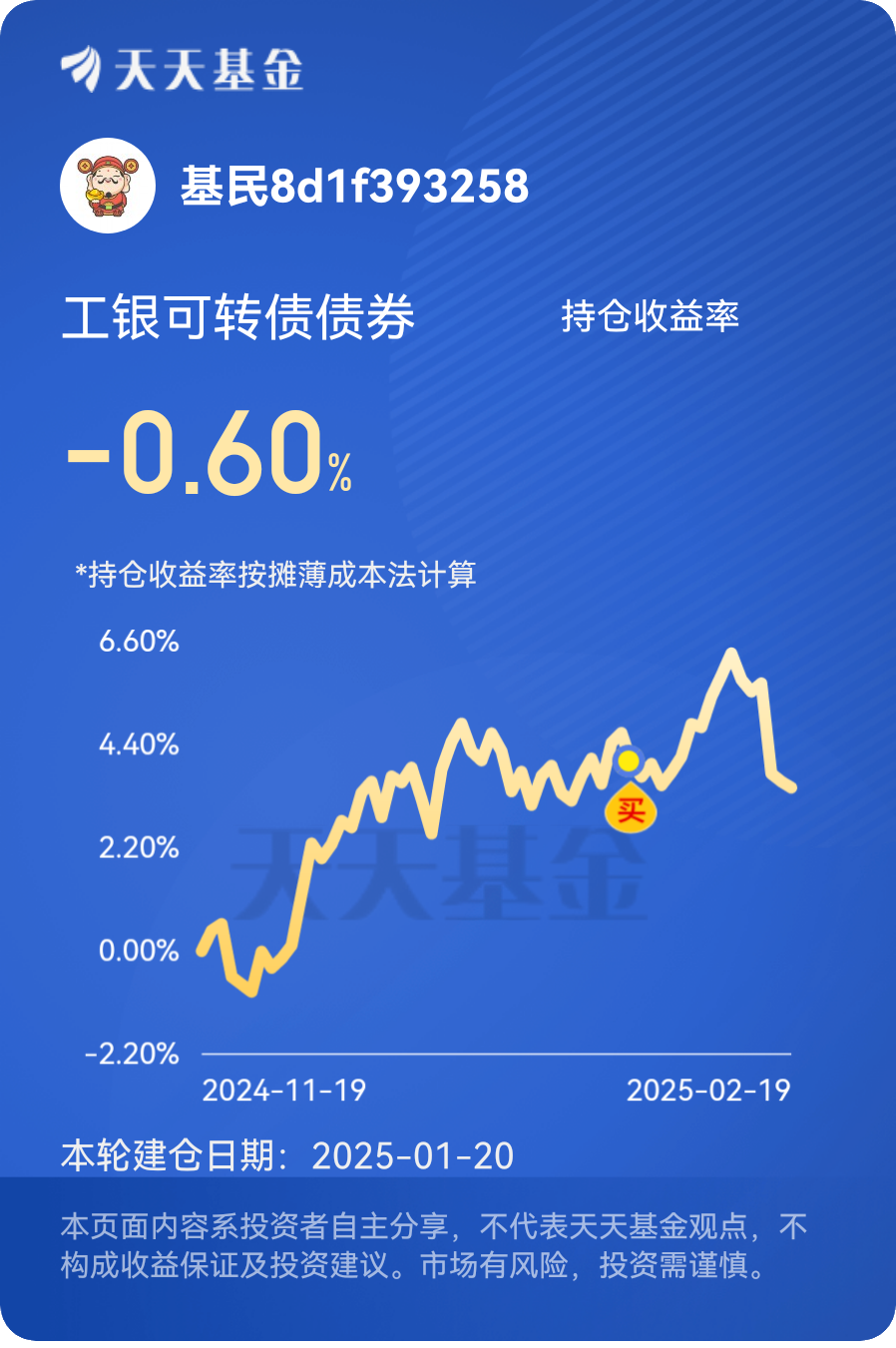 打卡第7天。$工银可转债债券$具备股债平衡的风险收益特性。该基金在投资策略上始终