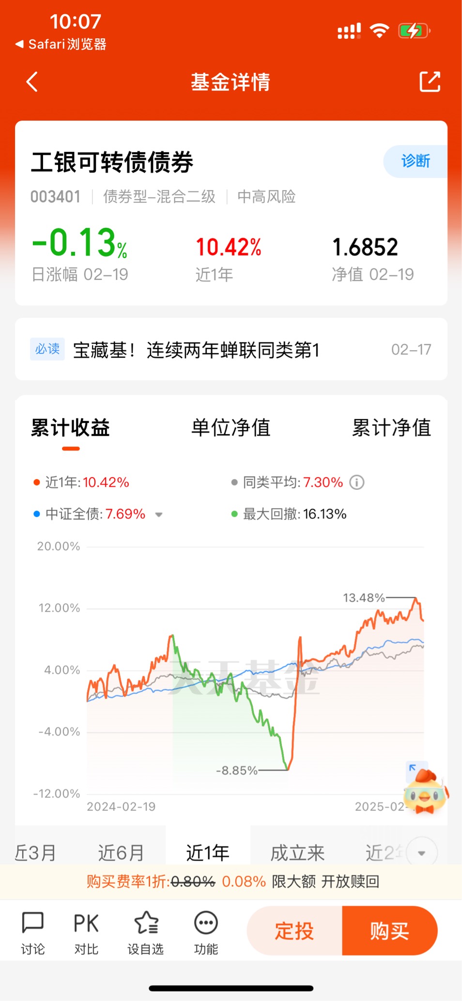 面对这样的市场环境,我深知,只有做好充分的准备,才能在风浪中稳住阵脚。因此,在经过深思熟虑后,我决定将工银可转债债券基金作为我2025年投资布局的重要一环。