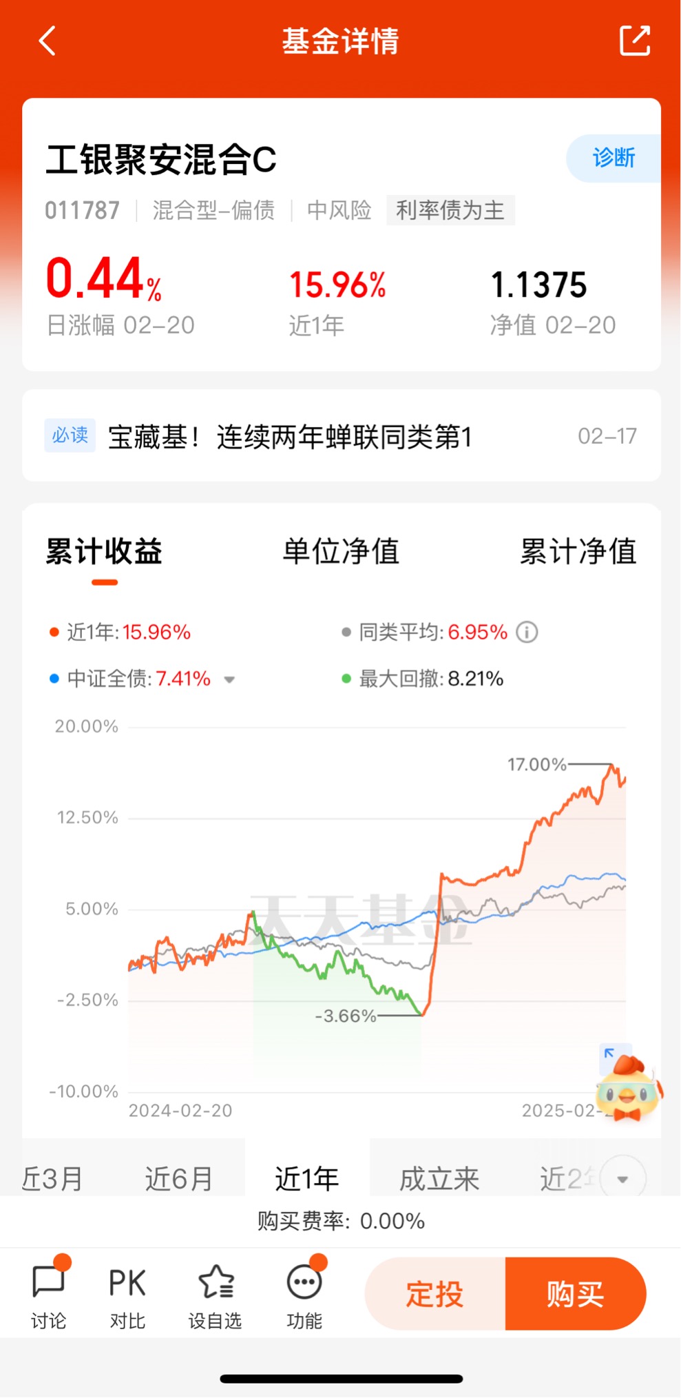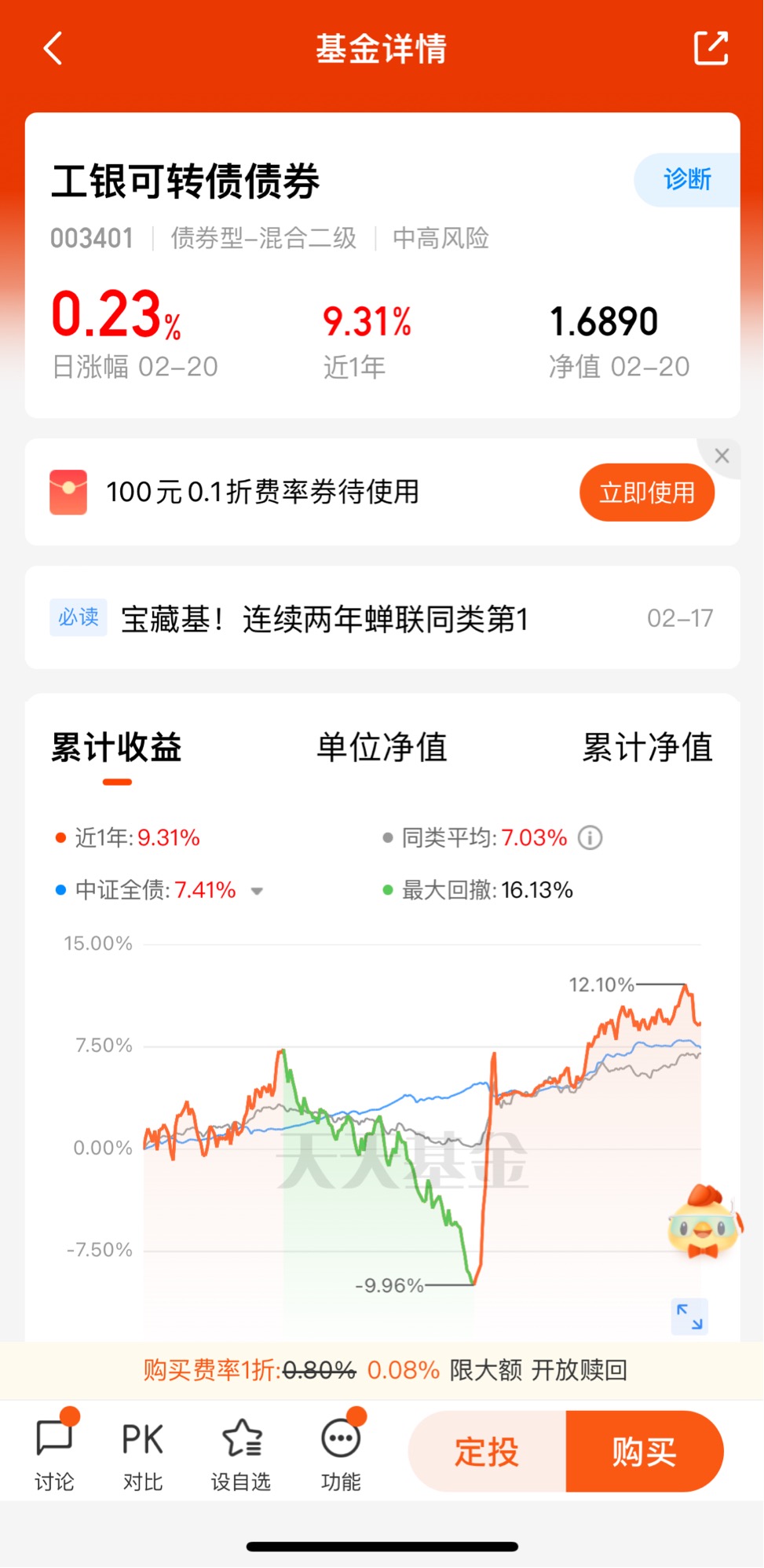 工银可转债自成立来获得了68.90%的回报,近1年更是拿下9.31%的收益回报,近2年业绩在同类基金中排名第3,工银可转债在追求财富的稳健增值同时,也保证了资产的控风险性。从夏普比 率来看,近3年夏普比率0.20,优于同类65%的基金,工银可转债攻守有道,是想要追求收益又怕又太高风险人群的好选择,感兴趣的可以持续关注!@工银瑞信基金
