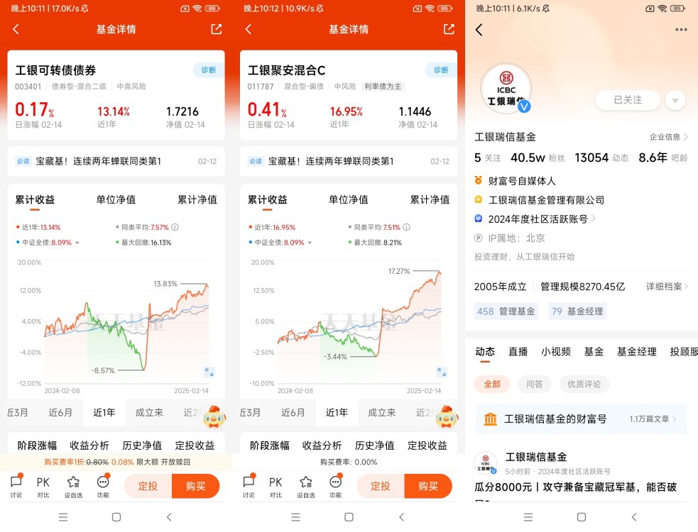 契合市场趋势:在当前复杂多变的市场环境下,这两款基金展现出强大的适应性。2025年,积极的财政政策与适度宽松的货币政策为资本市场注入活力。债市方面,利率有望震荡下行,信用利差或小幅收窄,为工银可转债债券和工银聚安混合C的债券投资部分创造了有利条件。股市方面,市场的回暖也为基金的权益类投资带来了更多机会。两款基金凭借各自的投资策略,能够充分把握市场变化,在不同资产类别中寻找投资机会,实现资产的稳健增值。