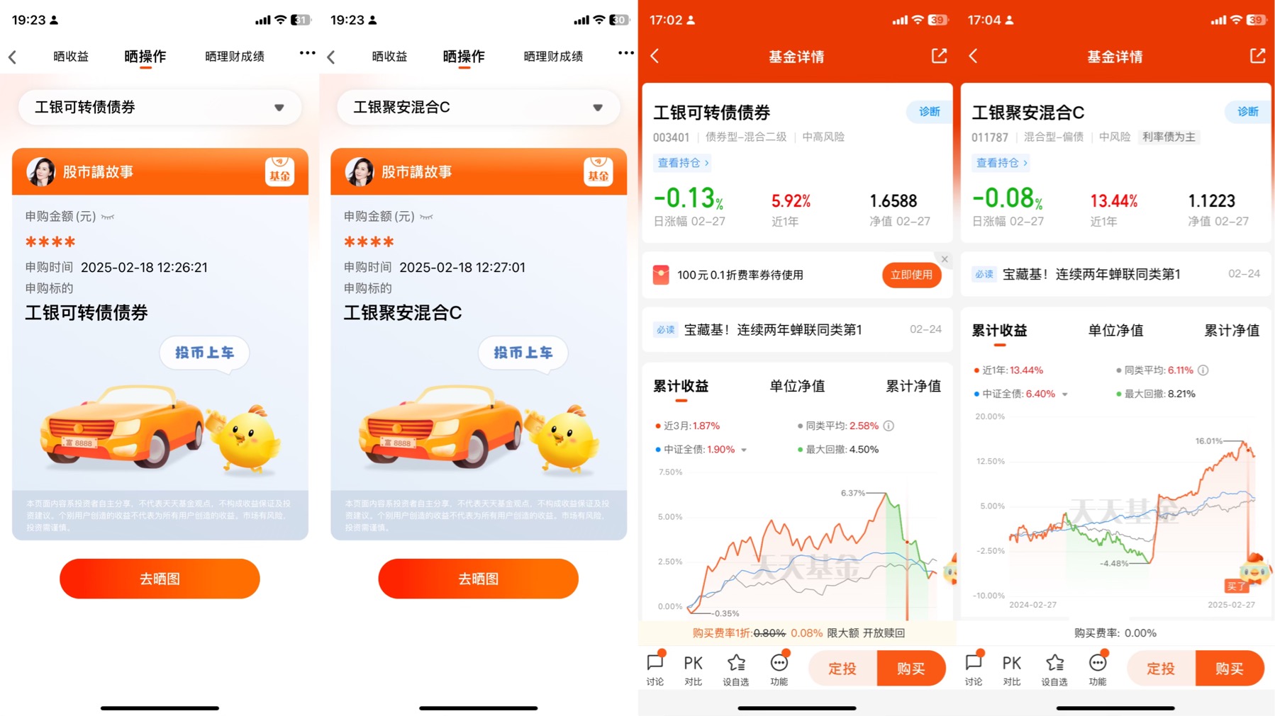 我看好A股市场和债券市场的后续表现!更加积极的财政政策和适当宽松的货币政策,以及引导中长期资金入市,都支持股市债市延续上涨行情,因而工银可转债、工银聚安混合这样的“固收+”、“偏债混”等含权资产将更具配置价值!@工银瑞信基金 #晒收益#