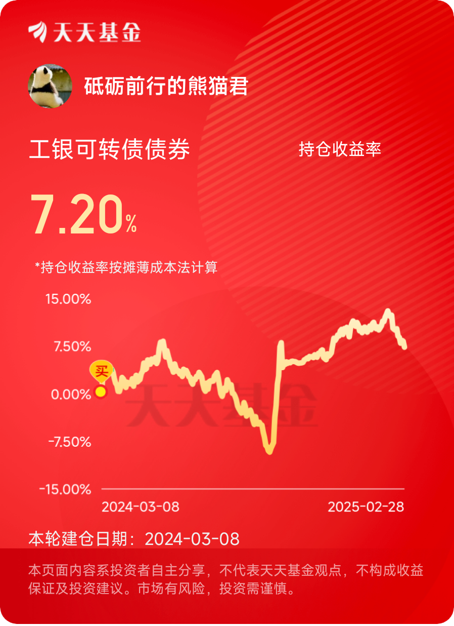 进入2025年,随着利率的持续低位运行,“固收+”、“偏债混”等含权资产或将迎来新的发展机遇。工银可转债债券基金,凭借其灵活的投资策略和专业的管理团队,有望在新的市场环境中继续书写辉煌。