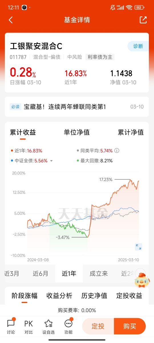 工银聚安混合C在业绩方面同样可圈可点,近3个月涨幅达5.17%,近6个月涨幅为19.14%,近12个月涨幅16.12% ,在2024年同类产品排名中表现突出,净值增长率高达19.07%,彰显出强劲的盈利能力。在市场整体震荡的2024年,许多基金收益不佳,工银聚安混合C却能脱颖而出,为投资者带来可观回报。