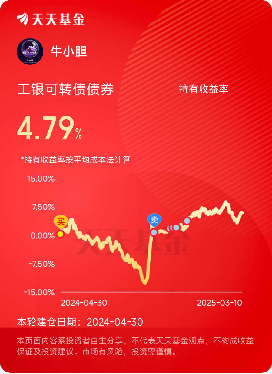 在美股暴跌、A股震荡的复杂市场环境下,工银可转债与工银聚安混合C凭借自身独特优势,无论是从资产配置的角度,还是追求稳健收益与风险控制的目标出发,都值得投资者重点关注与配置,为投资者在动荡市场中开辟一条财富保值增值的新路径。@工银瑞信基金 $工银可转债债券$ #晒收益#
