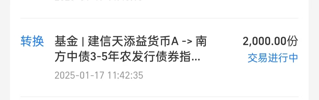 $南方中债3-5年农发行债券指数E(OTCFUND|013593)$+2000份,南方中债3-5年农发债券是一个纯利率债,近期中短利率债回调得比较多一点,也差不多调整到合适的位置,耐心等待反弹行情的到来。南方中债3-5年近3个月产蛋219个蛋,近一年年化收益率6.53%,表现还是不错的,E类7天免手续费,支持转换功能,流动性还ok,逢低继续配置一点,期待行情早点好转。