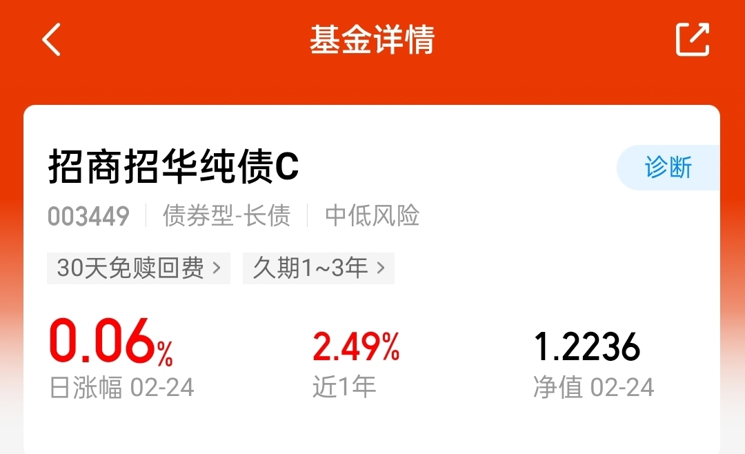 债券整体收益虽不算高,但像这类老牌纯债收益还不错近一年涨2.49%,比货基多。把