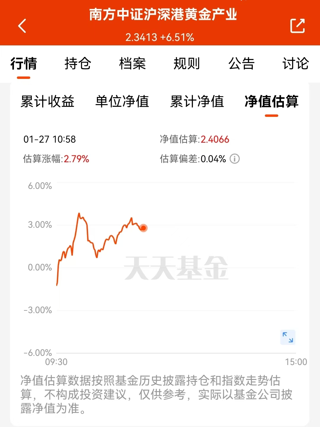 为什么金价涨,黄金产业链基金涨得更多?因为金价涨,那些挖金矿的公司利润大增,股价涨得比金价还猛。$南方中证沪深港黄金产业股票指数发起C$(021959)就是投这些公司的,近半年涨了82%,近一年涨了133%,同类排名连续六期第一。现在金价突破5000美元了,后面还有空间,这种基金比直接买金条弹性大。10块钱就能买,门槛低,费用也比直接买金划算。想参与黄金行情又不想只赚金价涨幅的,这种产业链基金更合适。机会难得,别等涨上去了再拍大腿。#AI助手Clawdbot爆火!AI应用迎布局机会?#